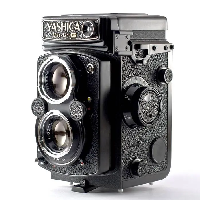 Les appareils photo Twin Lens Reflex (TLR) incarnent une époque où la photographie se démocratisait, et de nombreux passionnés firent l´acquisition du modèle dont il est question aujourd’hui : le Yashica Mat 124G. Commercialisé à partir de 1971, son design classique, son fonctionnement mécanique, le format carré de ses images et leur qualité, continuent de fasciner les passionnés de photographie, même à l’ère numérique actuelle. Voici à quoi il ressemble :
